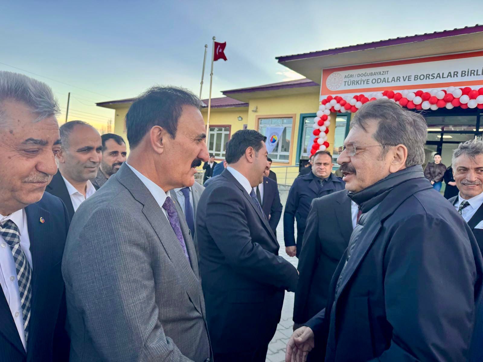 Ağrı’da önemli iki açılış programı gerçekleştirildi. Yönetim Kurulu Başkanımız Nayif Süer ile Yönetim Kurulu Başkan Yardımcımız Muzaffer Bilen, hem Gürbulak Gümrük Kapısı’nın modernizasyonunun ardından düzenlenen açılış törenine hem de Türkiye Odalar ve Borsalar Birliği (TOBB) tarafından Doğubeyazıt’ta hayata geçirilen Özel Eğitim Meslek Okulu’nun açılış programına katılım sağladı.